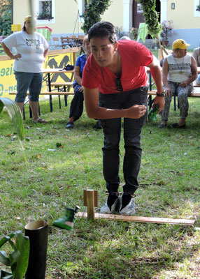 Im Rahmen des Mitgliederfestes der HUT Kultur fand auch heuer wieder ein Bauerngolfturnier statt. Auf Grund der Beteiligung von Spielern aus Syrien und Afghanistan wurde der Bewerb vom Präsidenten Ing. Herbert Floigl zur internationalen Kärntner Meisterschaft erhoben! Bei besten Wetterbedingungen wurde um jeden Punkt gekämpft, auf 5 Sektoren und beim strategischen Weitwurf waren oft nur cm ausschlaggebend. Letzten Endes gab es einen überlegenen Sieger - Ali Reza aus Afghanistan - der sich jetzt internationaler Kärntner Meister nennen darf. Urkunden und Preise gab es für alle Teilnehmer, mit dem ausgezeichneten Essen vom HUT Kulturteam und Musik mit Manfred klang ein sehr gelungener Bewerb aus.